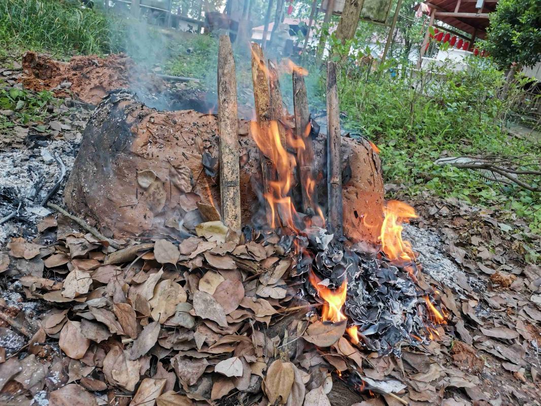 生火制作叫花鸡